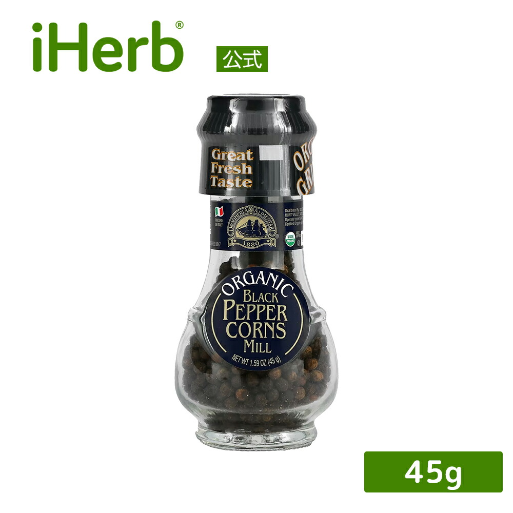 【楽天市場】【POINT20倍★11/14 10:00〜11/16 23:59】ドロゲリア ブラックペッパー オーガニック ミル付き 【 iHerb アイハーブ 公式 】 Drogheria & Alimentari アリメンターレ 有機 ブラックペッパーコーン 調味料 スパイス 黒コショウ 黒胡椒 45g:iHerb